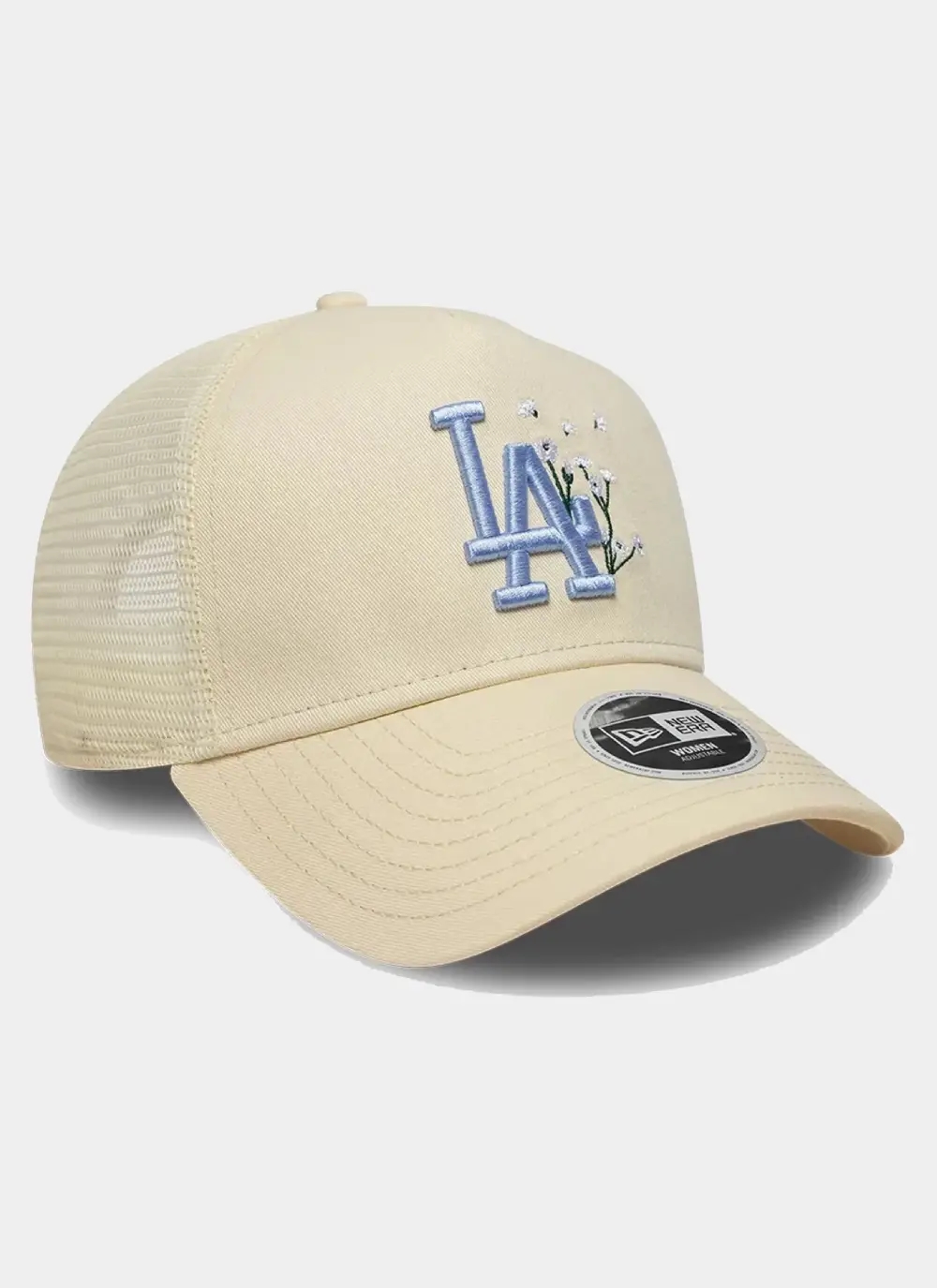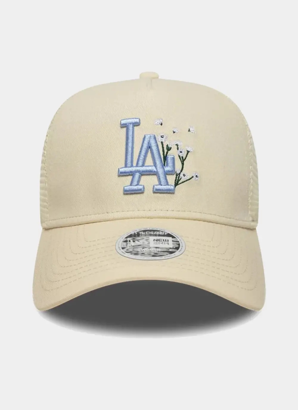 • Womens MLB Floral LA Dodgers Light Beige 9FORTY A-Frame Trucker Adjustable Cap