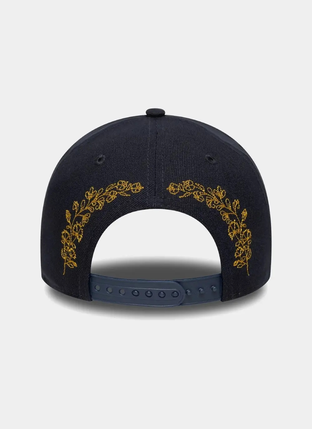 • Gold floral embroidery on left and right of visor
