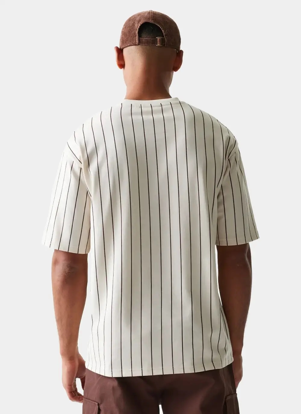 • New Era Pinstripe Light Beige Oversized T-Shirt
