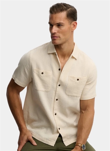 Merchant Textured S/S Skjorte Beige