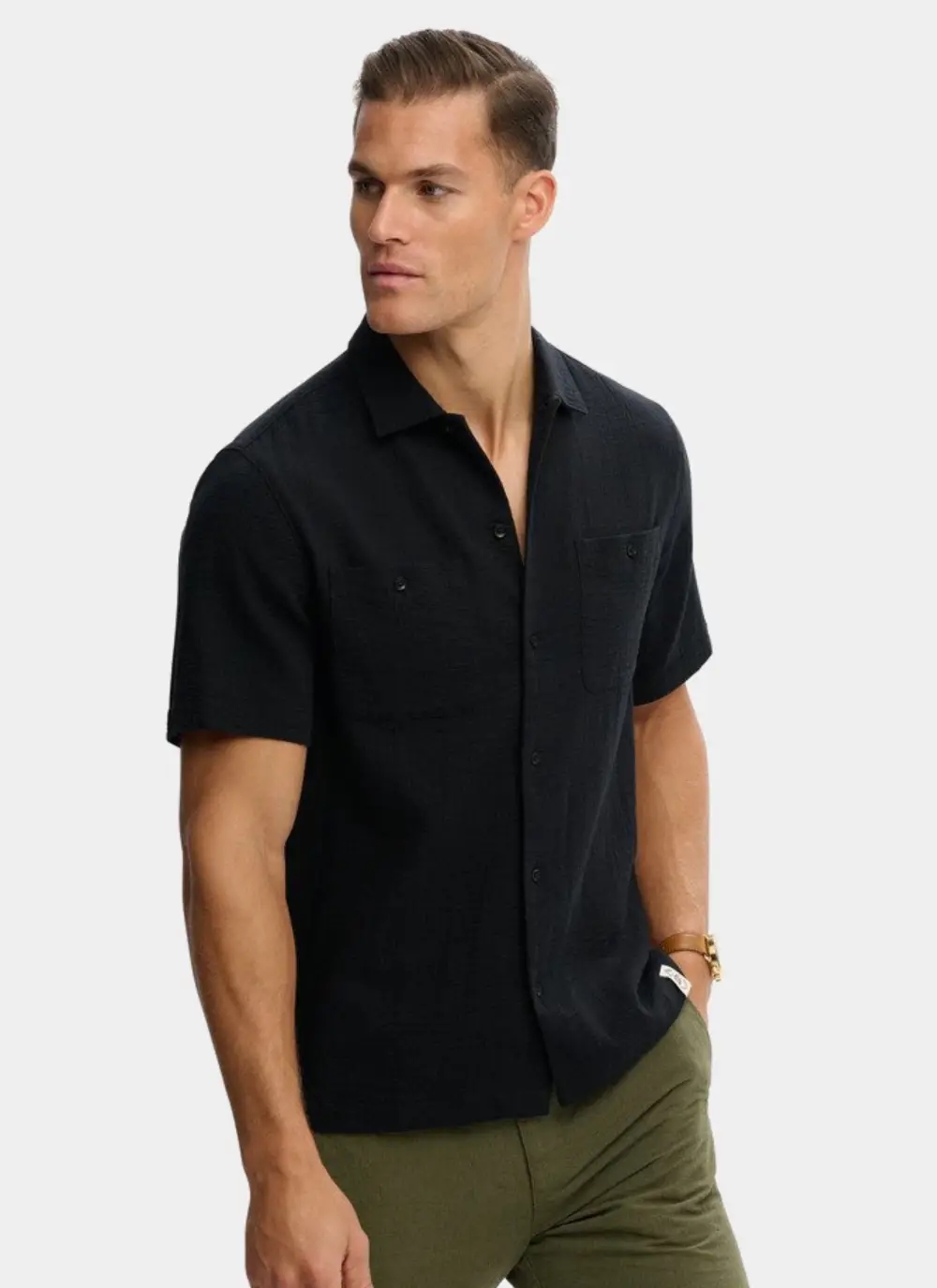 Merchant Textured S/S Skjorte Black